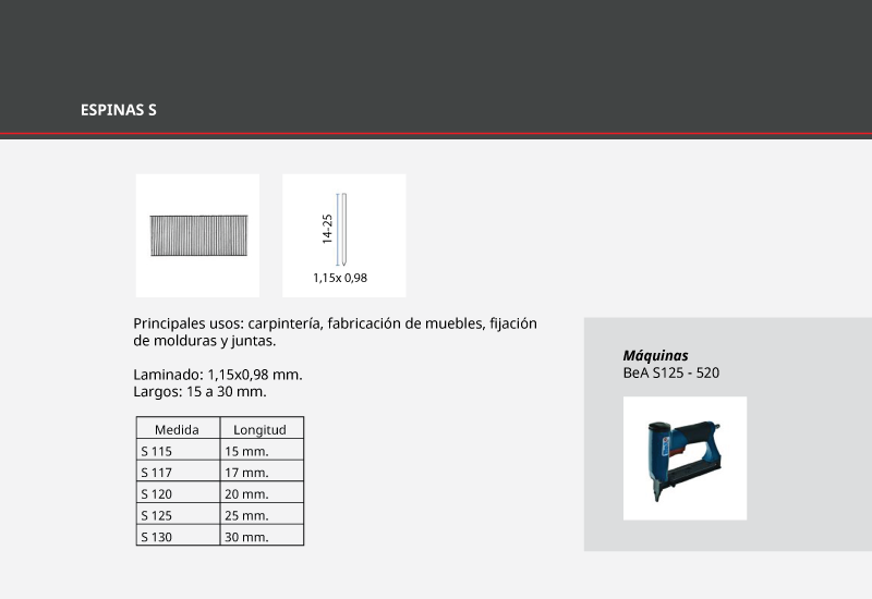 Clavillos y Espinas para Clavadoras
